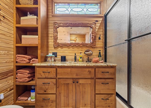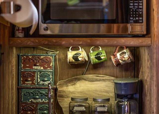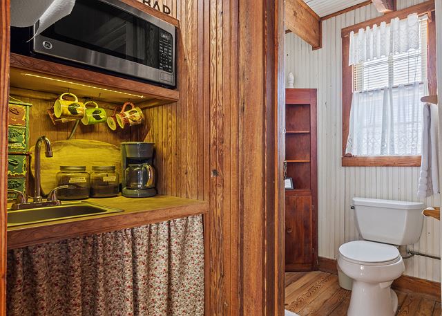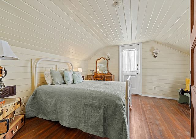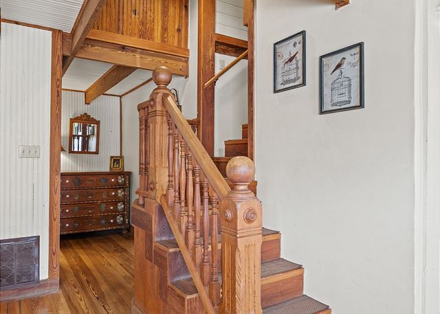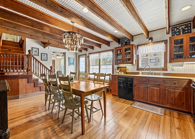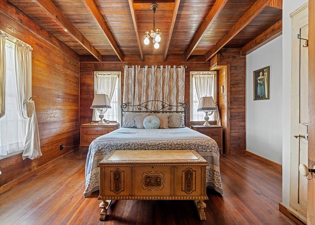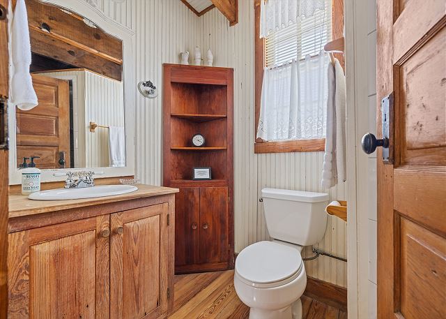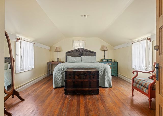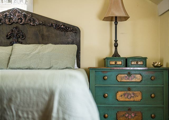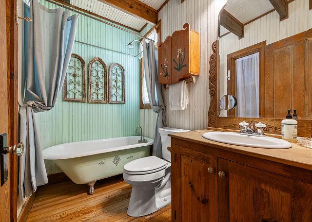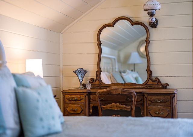 With a mixture of vintage decor and antiques, you will be charmed by the living areas. Features a fully equipped kitchen and formal dining area, spacious living room with a flat screen TV and gas fireplace.