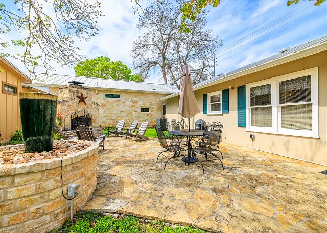An unforgettable Fredericksburg getaway awaits you at Amorosa! You will love the picturesque setting that includes a beautifully landscaped patio with outdoor stone gas fireplace, outdoor dining, charcoal grill, and water feature.
