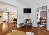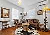 As you step through the front door, you'll be greeted by the warm embrace of the carefully preserved historical details, including original hardwood floors and quaint architectural touches that tell tales of a bygone era. The living room invites you to unwind on plush furnishings, with large windows allowing natural light to fill the space.