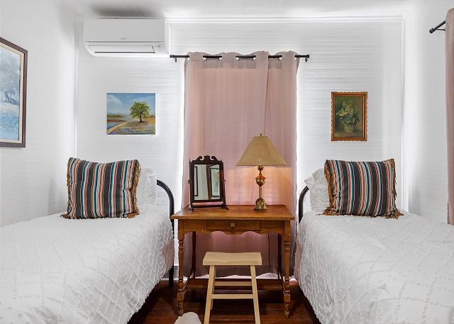 Air Conditioning, Linens, Ironing Board, claw foot tub, Cable TV, WI-FI, Flat Screen TV, Hardwood Floors, Children Welcome, Tub and Shower Combo, bathtub, King bed in master, Dog friendly, 2 bedroom