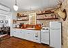 The well-appointed kitchen is a blend of old-world charm and contemporary convenience, equipped with modern appliances to make meal preparation a breeze. Enjoy your morning coffee on the back porch.