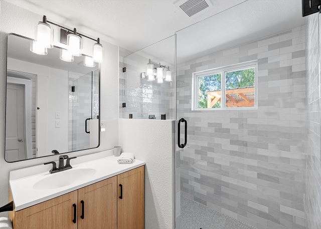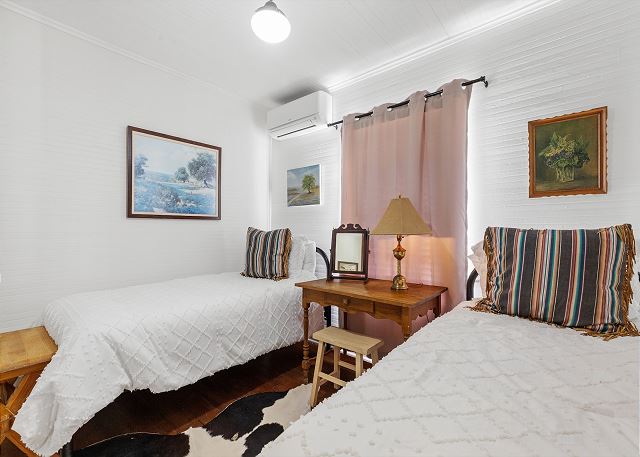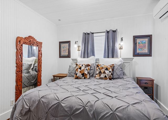 The two comfortable bedrooms are thoughtfully designed with your comfort in mind. Sink into the plush bedding and enjoy a restful night's sleep in these cozy havens. The bathroom, with its vintage clawfoot tub with extreme depth for your soaking pleasure and modern amenities, ensures your stay is as comfortable as it is charming.