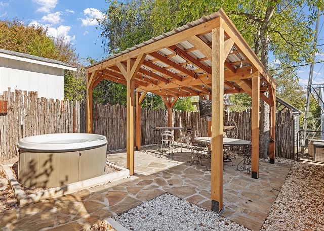 Venture outdoors to discover your private oasis. The spacious back yard provides a tranquil retreat, surrounded by lush greenery and featuring a hot tub, where you can soak away the stresses of everyday life under the Texas sky. Whether it's a morning dip or stargazing at night, this hot tub is your personal sanctuary.